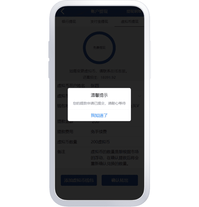 2. 填入您需要出款的数量,